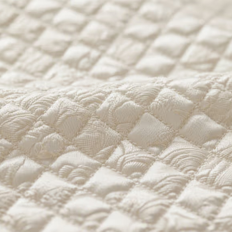 Ткань в клетку с имитацией парчи — это высококачественная ткань, сотканная по изысканной жаккардовой технологии. Поверхность представляет собой клетчатый узор, создающий ощущение трехмерности и многослойности. Благодаря уникальному жаккардовому процессу ткань не только демонстрирует нежную текстуру, но и придает сильный визуальный эффект, придавая сдержанный и роскошный блеск. Эта ткань очень подходит для использования в таких областях, как изготовление модных сумок и украшение одежды. Его тонкая текстура и трехмерный эффект делают его центральным элементом любого дизайна и особенно подходят для повышения общего качества и эстетической ценности продукта. Трехмерное ощущение ткани усиливает ее визуальную динамику, выделяя ее в дизайне сумок и одежды, подчеркивая изысканность и роскошь продуктов высокого класса.