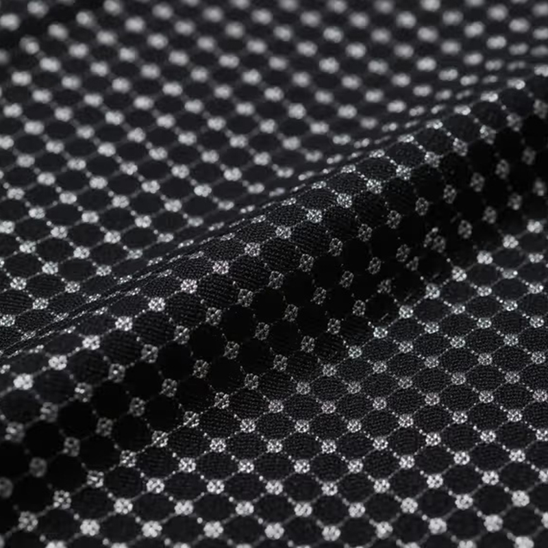 Ткань Dot Mesh Birdseye имеет уникальную структуру отверстий в виде точечной сетки. По сравнению с традиционной тканью «птичий глаз», отверстия в ткани «птичий глаз» с точечной сеткой тоньше и более регулярные. Этот инновационный дизайн значительно улучшает воздухопроницаемость и функцию пота ткани, делая циркуляцию воздуха более плавной, а пот быстро испаряется, сохраняя пользователя сухим и комфортным. Будь то интенсивные упражнения или жаркая погода, ткань «птичий глаз» из точечной сетки может эффективно предотвратить задержку пота и обеспечить идеальный комфорт. Благодаря своей воздухопроницаемости, влагопоглощению и потоотделению, ткань «птичий глаз» с точечной сеткой очень подходит для производства спортивной одежды, летней одежды и повседневной повседневной одежды. Легкая текстура и приятная на ощупь ткань «птичий глаз» с точечной сеткой делают ее идеальным выбором для длительного ношения, подходящей для любителей спорта и людей, которые любят активный отдых. Будь то спортивное снаряжение, такое как одежда для бега, штаны для йоги, одежда для фитнеса или легкая одежда, такая как летние футболки и шорты, ткань «птичий глаз» из точечной сетки может обеспечить максимальный комфорт и избежать дискомфорта, вызванного длительными тренировками или ношением при высоких температурах.