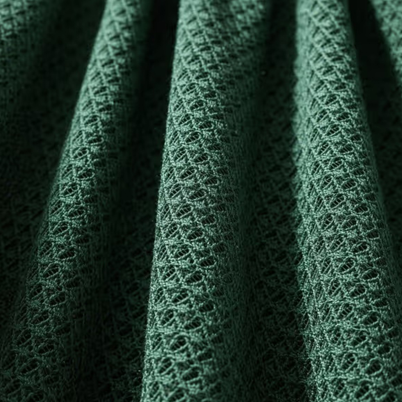 Эластичная полиэфирная переплетенная ткань «птичий глаз» - это ткань, предназначенная для производства спортивной, летней одежды, снаряжения для активного отдыха и повседневной одежды. Благодаря уникальному процессу переплетения эта ткань сохраняет воздухопроницаемость и влагоотводящие свойства традиционной ткани «птичий глаз», одновременно повышая прочность и долговечность ткани. Его поверхность состоит из крошечных отверстий, которые не только придают ткани уникальный визуальный эффект, но и улучшают воздухопроницаемость, позволяя быстро выводить пот, сохраняя пользователя сухим и комфортным. Будь то интенсивное потребление во время занятий спортом или повседневное ношение в жаркую погоду, он может обеспечить комфорт на весь день.