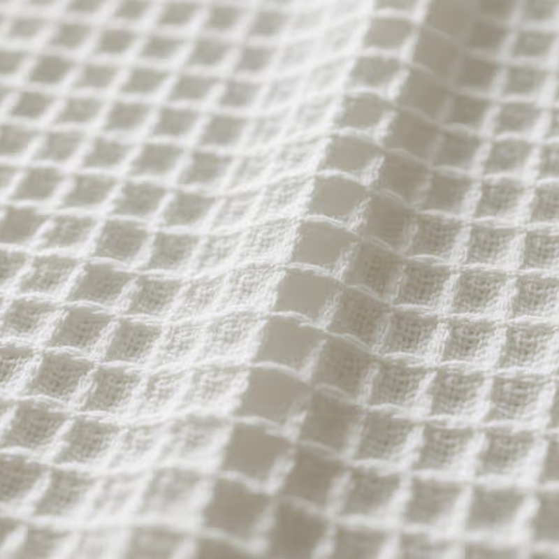 Waffle Knit Comfort Fabrics — это ткань с уникальной сетчатой вогнуто-выпуклой текстурой. Его поверхность имеет форму вафли, которая обладает отличной воздухопроницаемостью и отличным впитыванием пота. Такая структура позволяет ткани эффективно впитывать влагу и быстро отводить пот, сохраняя кожу сухой. Он подходит для ношения во время интенсивных тренировок и может быстро впитывать и испарять пот, обеспечивая комфорт во время тренировок. Легкость и мягкость ткани Waffle Knit делают ее очень удобной в ношении летом. Его широко используют при производстве летних рубашек и другой одежды, позволяющей сохранять прохладу тела в жаркую погоду. Благодаря хорошей воздухопроницаемости и функции впитывания пота эта ткань очень подходит для изготовления спортивных полотенец, которые помогают спортсменам быстро вытирать пот и оставаться сухими во время тренировок.